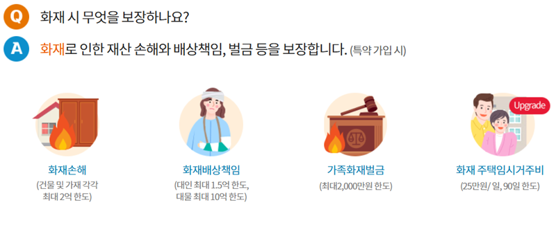 불이 났을 때 발생하는 건물 및 가재도구의 손해를 보장하는 상품입니다.